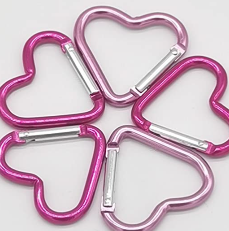 Portachiavi con cordino da 45mm moschettone a forma di cuore d'amore moschettone con gancio a molla in alluminio rosa rosso