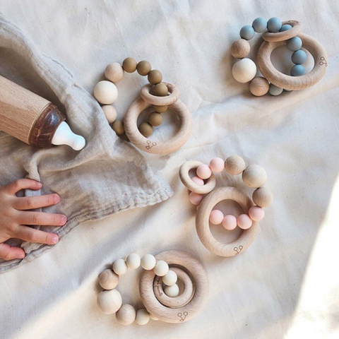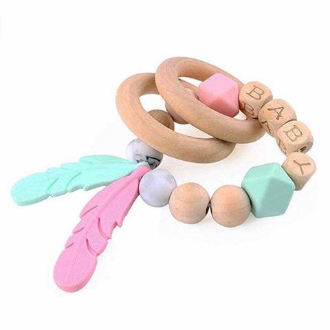 סיליקון teether תליון חרוזים תינוק עץ טבעת teether מוצץ שרשרת, מותאם אישית מוצץ סיליקון